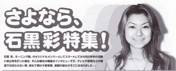 Ishiguro Aya de Morning Musume se graduó del grupo y de Hello! Project durante el concierto nocturno del 7 de enero en el Osaka Kosei Nenkin Kaikan.[1]