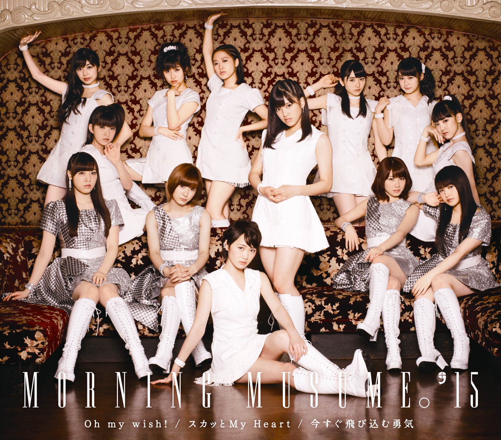 Oh my wish! / Sukatto My Heart / Imasugu Tobikomu Yuuki (Oh my wish!/スカッとMy Heart/今すぐ飛び込む勇気; Oh my wish! / Refresh My Heart / The Courage to Jump In Right Now) is Morning Musume '15's 59th single. The single was released on August 19, 2015 in 6 editions: 3 regular and 3 limited editions. The first press of the regular editions include a random trading card of 14 kinds depending on the jacket (42 in total). The limited editions include a event lottery serial number card.